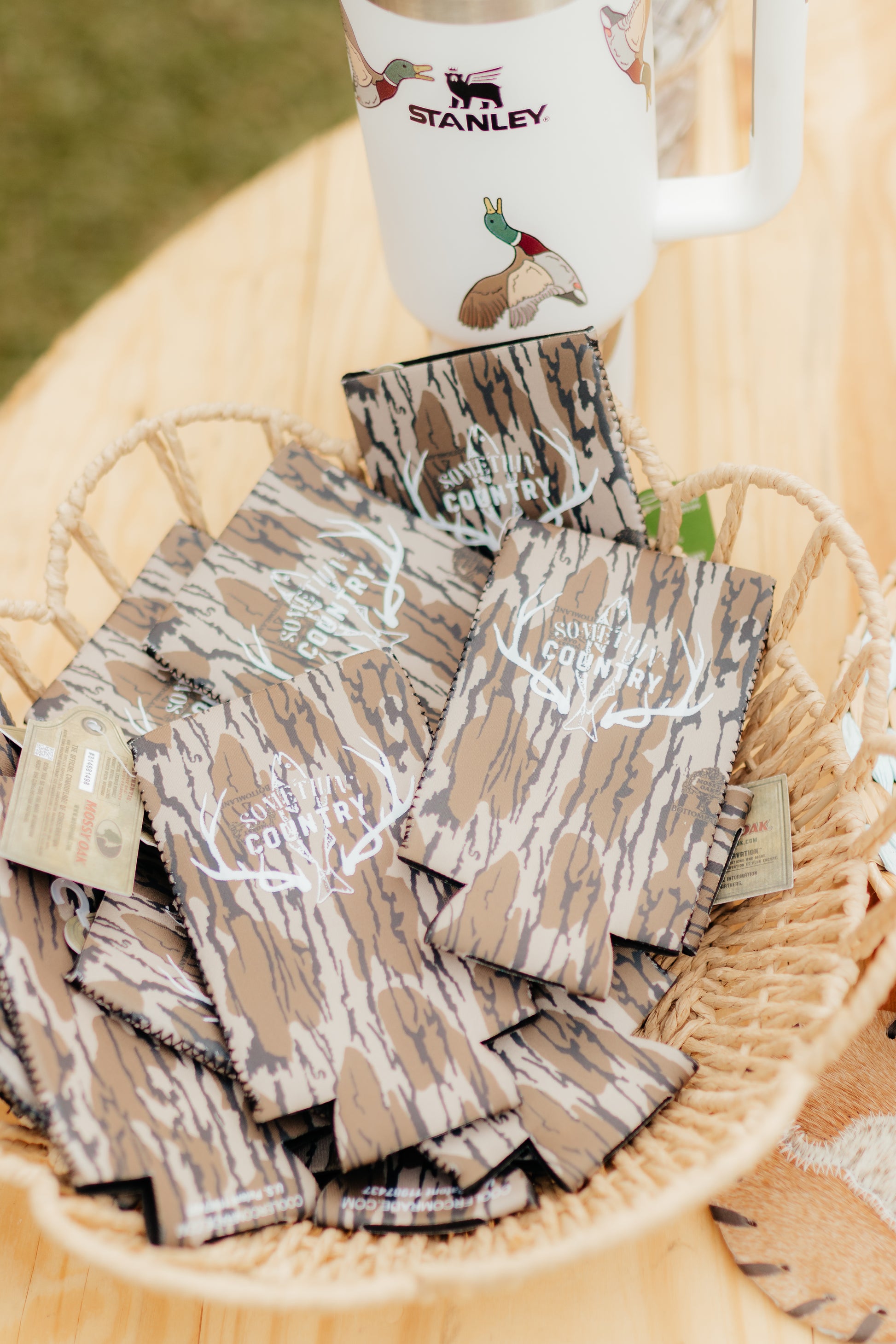 This Somethin' Country Mossy Oak Bottomland Koozie features our signature logo.